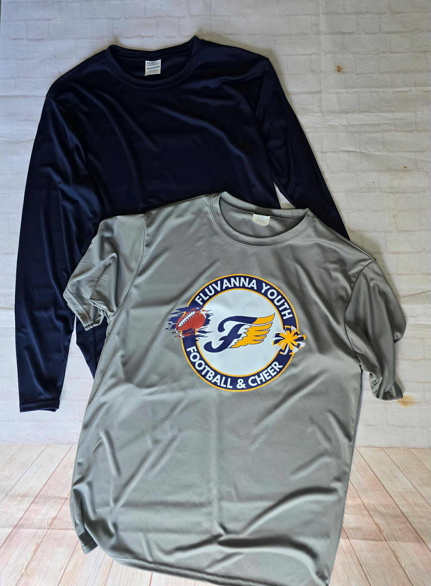 Stay cool and game-ready with our Fluvanna Youth Football & Cheer Performance T-Shirt / Long Sleeve. Designed for athletes, coaches, and fans, this lightweight top keeps you comfortable through every practice or pep rally. Featuring the official FYFC logo and available in navy or grey, it’s built for both performance and team pride.