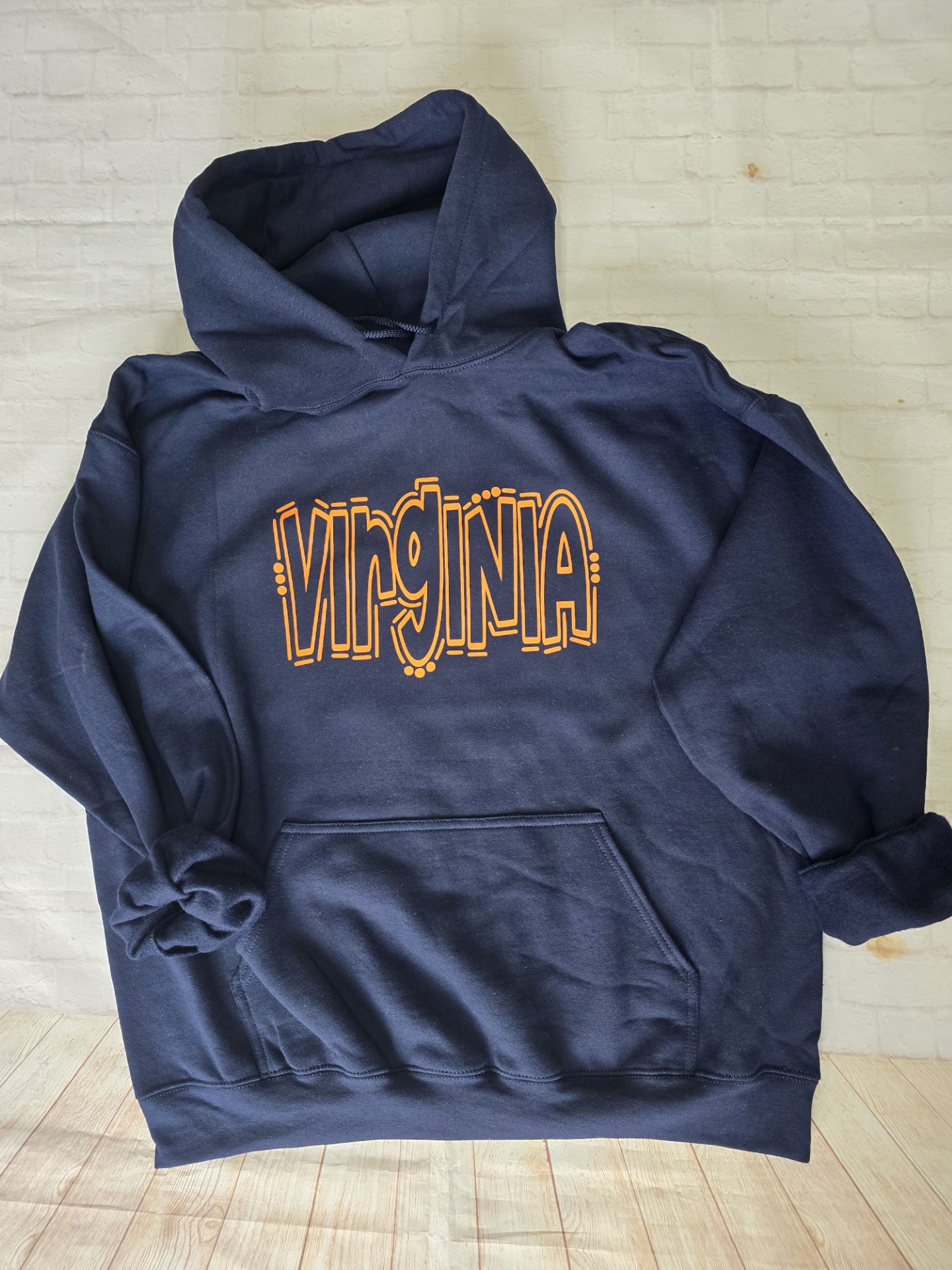 Virginia Hoodie – Represent Virginia in comfort and style! Available in blue with orange text or orange with blue.