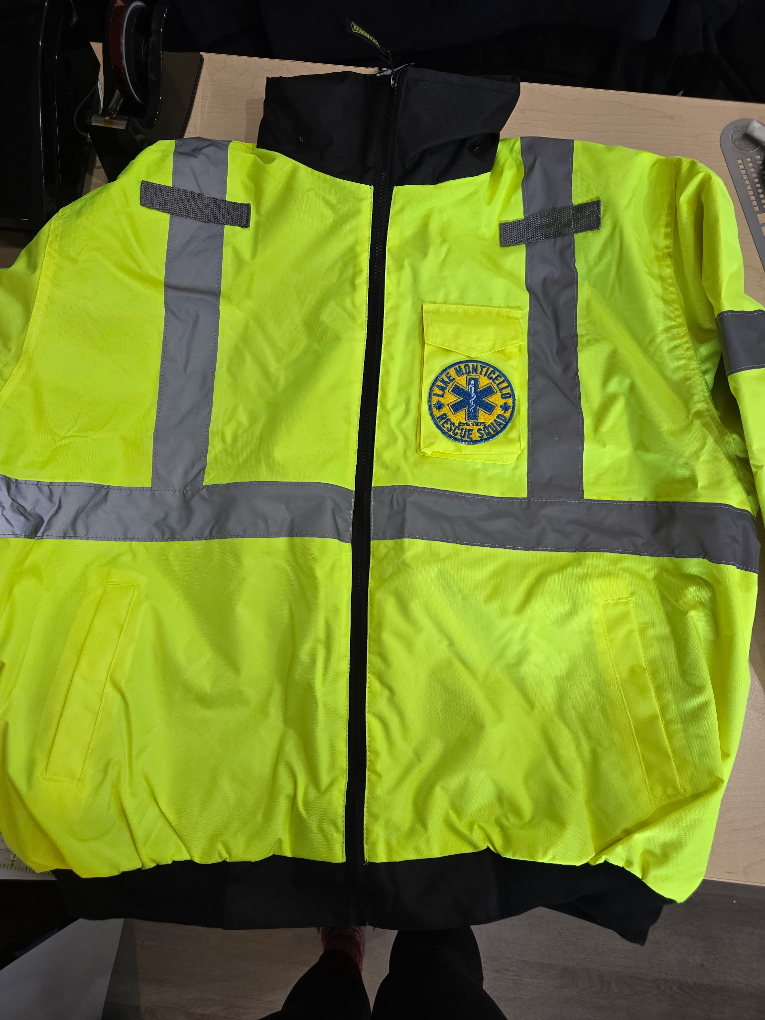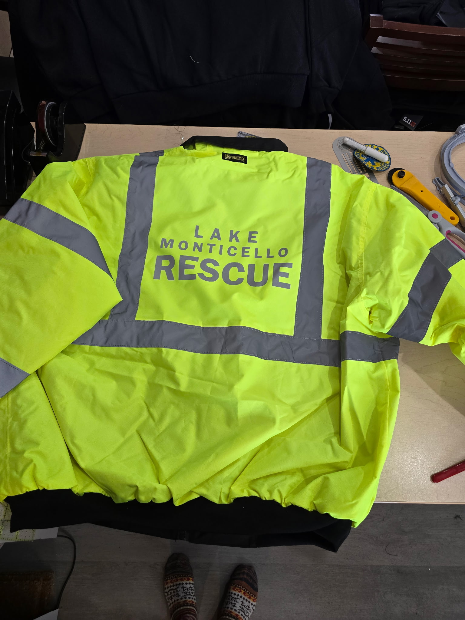 Custom Patchwork and reflective vinyl for LMVRS winter coat. Coat supplied by agency.